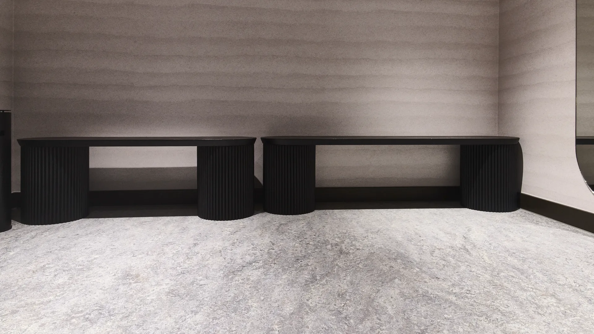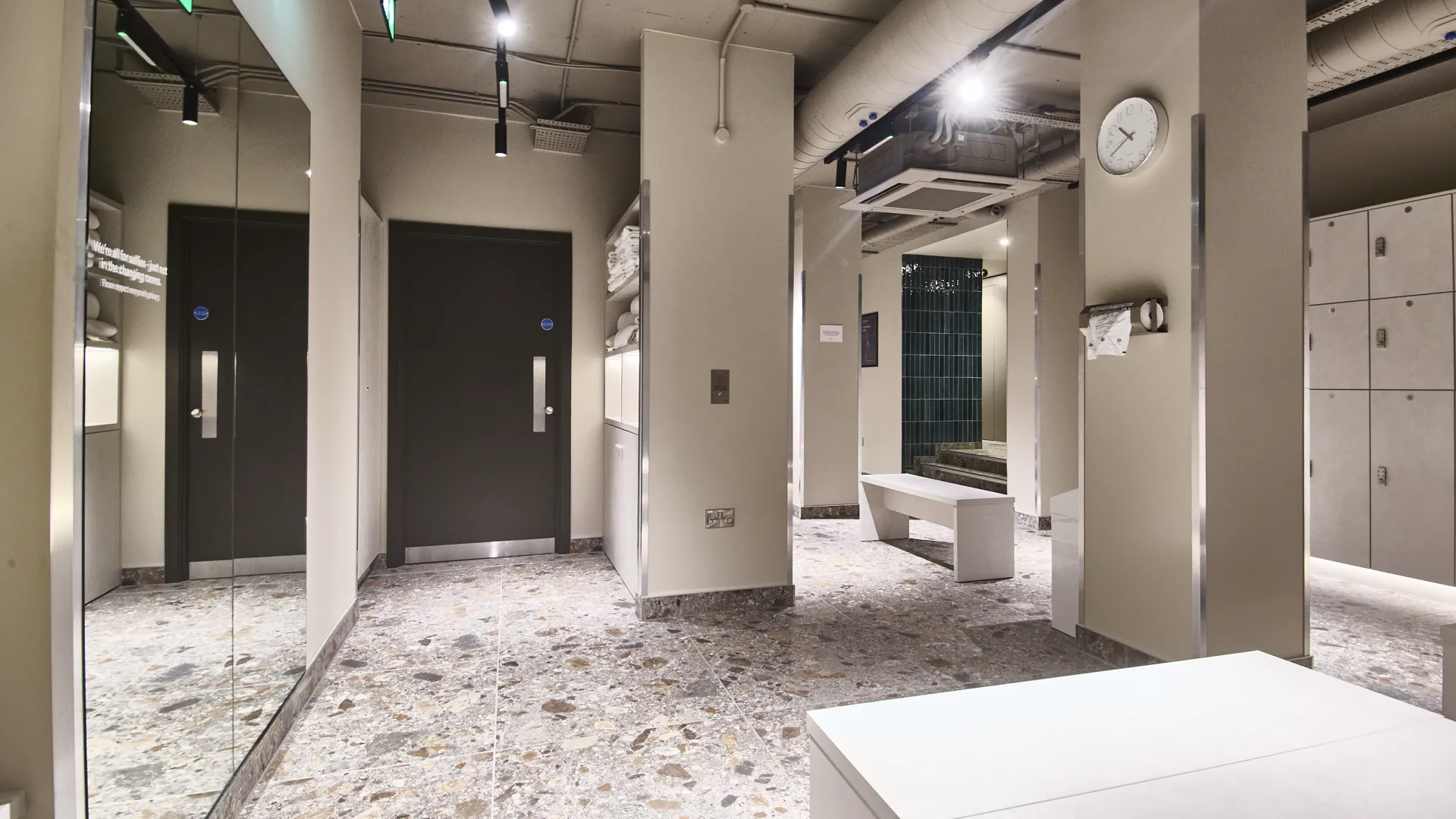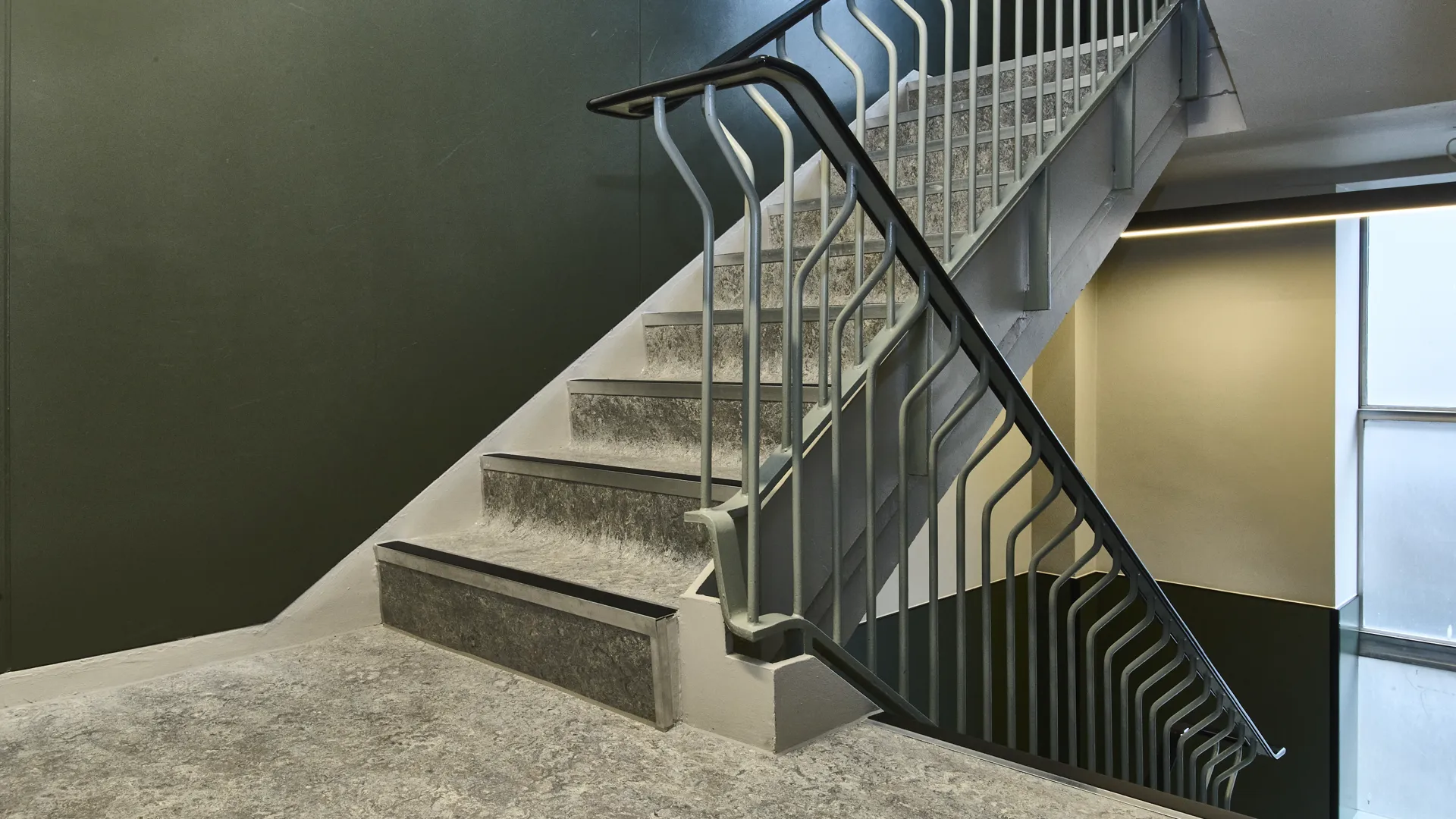 All communal areas, including staircases, were completed with Forbo Flooring Systems Marmoleum Vivace in Surprising Storm, delivering a durable, contemporary finish in line with the studio’s high-end design.