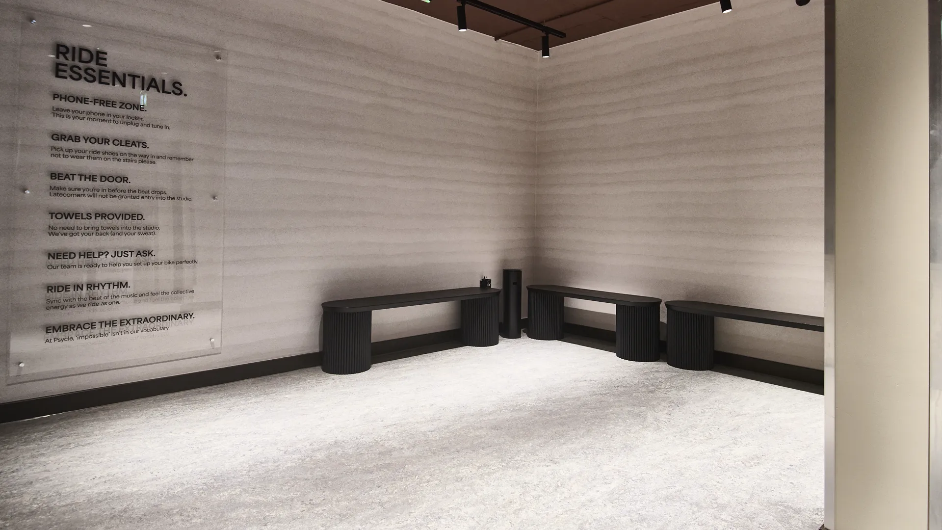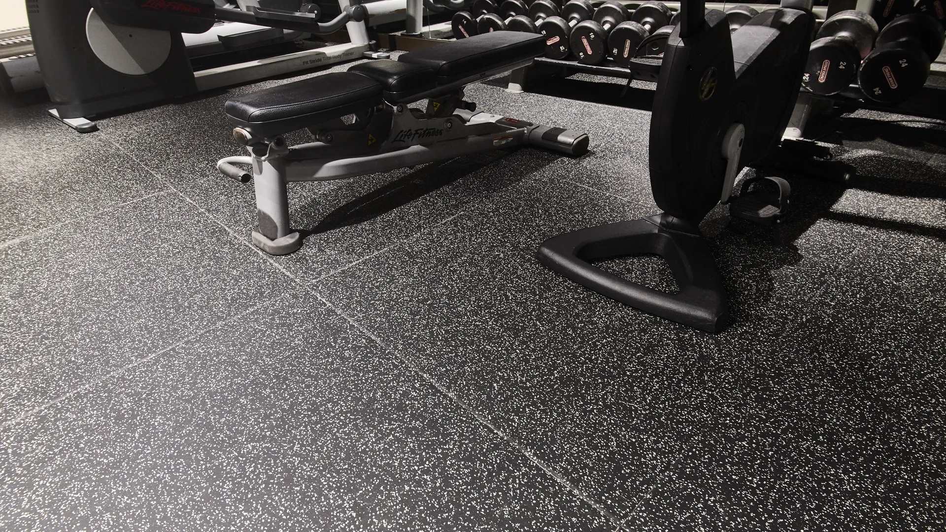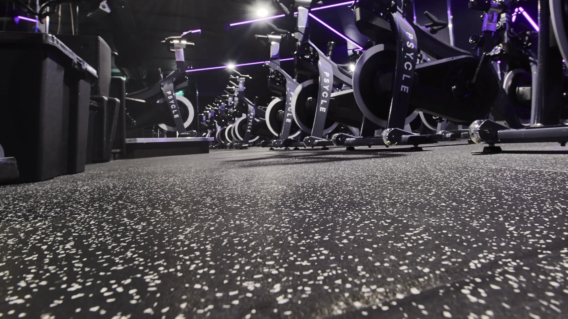 Our works included installing a high-performance acoustic flooring system in the Ride studio, finished with 20mm Fitness Tile in black with grey fleck, providing durability, impact protection, and sound control.